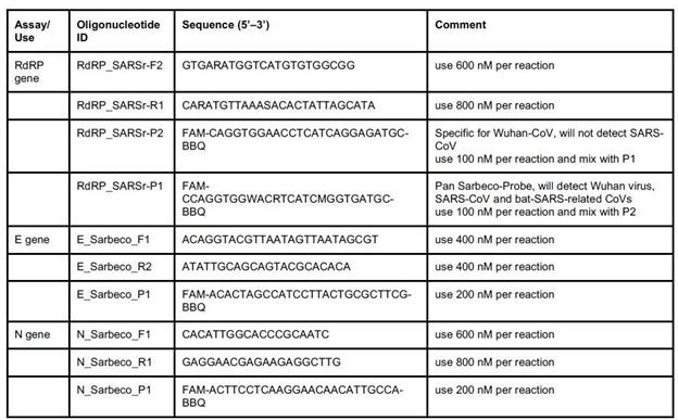 (Diagnostic detection of Wuhan coronavirus 2019 by real-time RTPCR, Protocol and preliminary evaluation as of Jan 13, 2020)