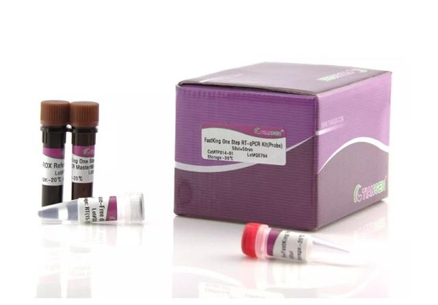 The FastKing One Step RT-qPCR Kit (Probe) (FP314) developed by TIANGEN is a one-step reverse transcription fluorescence quantitative detection kit based on probe method, which is specially designed for the detection of trace genes in various samples. The King RTase in the kit is a new molecular modified reverse transcriptase, which has stronger RNA affinity and thermal stability, with improved reverse transcription efficiency and the extension ability of complex secondary structure RNA templates. A new hot start Taq DNA polymerase is also applied to give the PCR reaction higher amplification efficiency and specificity. In addition, the kit simplifies the components to the greatest extent by mixing Taq and MLV enzyme into enzyme mix, and pre-mixing ion buffer, dNTPs, PCR stabilizer and enhancer into MasterMix, so that the multi-component mixing steps can be simplified.