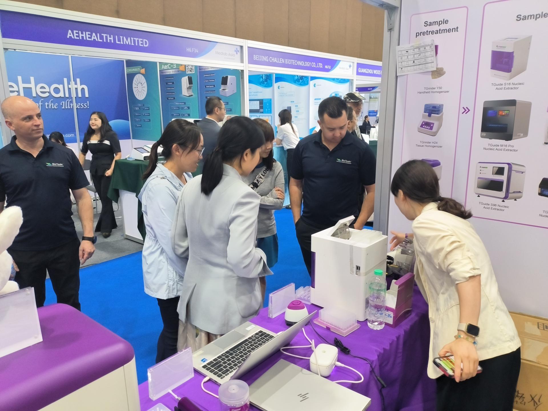The star product, TGuide S16, made a stunning appearance, attracting numerous attendees to stop and engage in discussions, garnering high praise for its exceptional operational mode, user-friendly interface, comprehensive reagent compatibility, compact and visually appealing design, and robust functionality. It has significant market potential to fulfill the automation needs for small-throughput nucleic acid extraction.