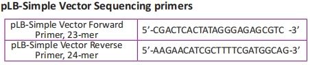 PLB-Simple Vector Sequencing primers