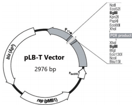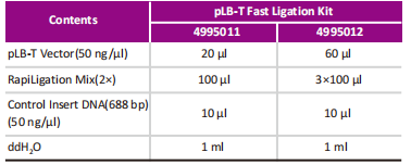 The pLB-T Fast rapid cloning kit provides efficient cloning of a wide range of PCR products and any DNA fragment with a sticky end. The kit is effective for both phosphorylate and non-phosphorylated DNA fragments. More than 95% of the positive recombinant clones were obtained in only 5min by ligation of the positive selection vector and the insert. The kit is equipped with a new type of RapiLigation Mix as a high-efficiency reagent for T4 DNA ligase reaction, which contains a linking enhancer and an enzyme stabilizer, thus greatly shortening the linking time and improving the linking and cloning efficiency of PCR products. According to different needs, DH5α competent cells and the control supercoiled plasmid were equipped for convenient transformation.