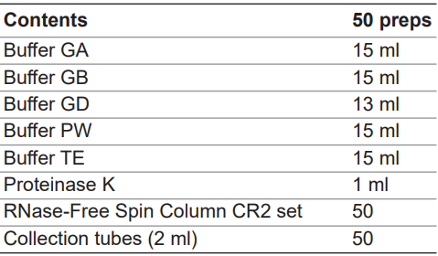 ● The integrity of DNA obtained in this kit depends on the samples type, storage and fixation conditions. Longer fixation time or longer storage time (>1 year) will lead to DNA fragmentation, in this case, long fragments will not be amplified.