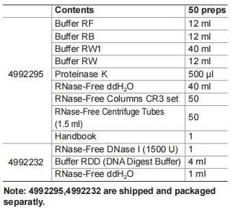 This kit is suitable for the purification of total RNA from formalin-fixed, paraffin-embedded tissue sections (FFPE).