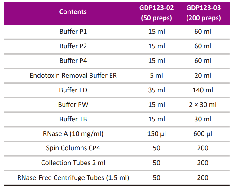 High-efficiency rapid plasmid mini prep kit for transfection-grade plasmids