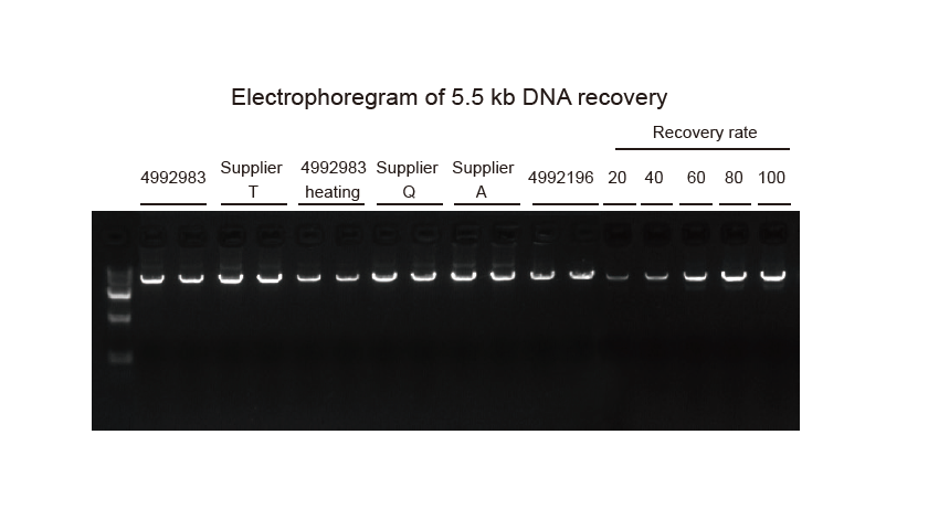 The concentration and purity of recovered DNA fragments can be detected by agarose gel electrophoresis and ultraviolet spectrophotometer.