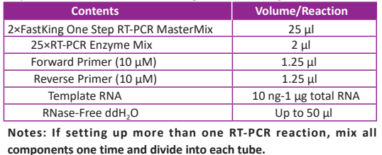 ● Completely mix the 2× FastKing One Step RT-PCR MasterMix and centrifuge the reagent to the botiom of the tube before use.