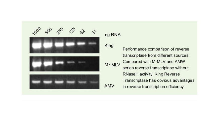 ● Template integrity: The integrity of template RNA is very important for reverse transcription. If RNA template contains RNase, the template RNA will be degraded and the amount of cDNA product will be decreased or even no cDNA product.