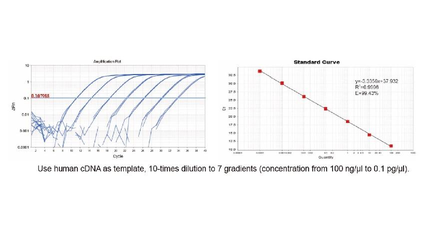 ● The specific antibody modified hot-start DNA polymerase in this product can activate all the enzyme activities by incubating at 95°C for 1 min. Meanwhile, together with the carefully optimized Buffer system, it can greatly shorten the denaturation, annealing and extension time, so as to shorten the total running time of PCR by 60%, obtain the results of the experiment faster without affecting the effect of the PCR reaction, and it has the characteristics of accurate quantitation, high amplification efficiency, good reproducibility and wide confidence range.