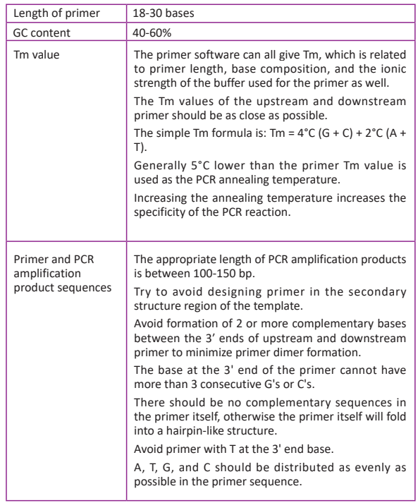 The requirements for designing primer are as follows: