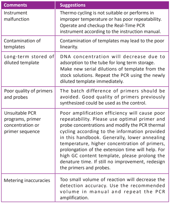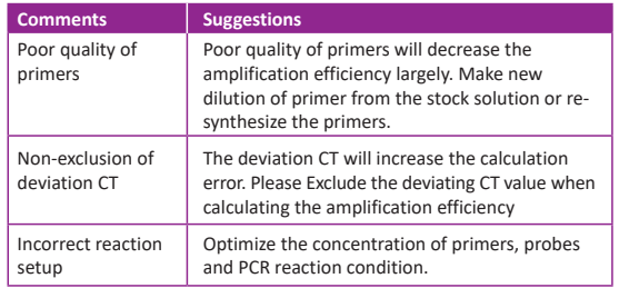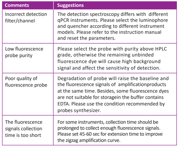 ● Poor fluorescence signal or zigzag amplification curve.