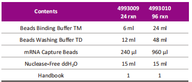The kit has a good mRNA capture effect for the complete total RNA. The obtained mRNA can be used for high-throughput sequencing, which can significantly improve the proportion of effective data in the sequencing results. In addition, the purified mRNA can also be used for random primer cDNA synthesis or other downstream applications.