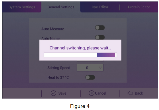 When the base mode and cuvette mode are switched, a prompt of channel switching progress will pop up on the screen. Do not open the upper arm during the channel switching process, and wait for the channel switching to succeed before proceeding to the next step, as shown in Figure 4.