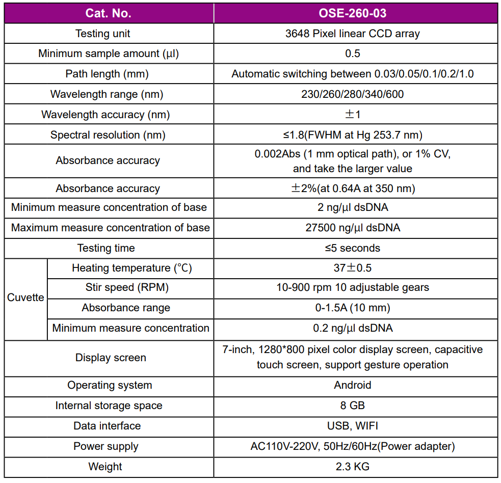 In base mode, this product can measure 0.5-2 µl samples with extremely high accuracy and repeatability. When the base mode is used to measure samples, the sample retention system applies surface tension to keep the samples between the two measureing optical fibers. In this way, the samples can be tested with higher concentration without dilution. The measurement range can reach 200 times of the concentration range tested by ordinary spectrophotometer, and the liquid column height between optical fibers can be adjusted in real time to obtain more accurate measure data. Compared with the traditional cuvette testing method, the base mode eliminates the complex cuvette cleaning process. The dust-free paper is convenient to clean. In addition, for samples with low concentration, high volatility or low surface tension that are not easy to form a liquid column, a cuvette can be used for measurement.
