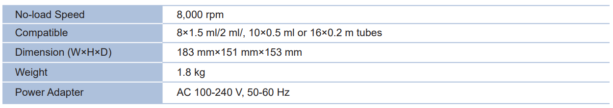 TGear Mini Centrifuge is a mini short-spin centrifuge suitable for various types of centrifuge tubes. It is suitable for the centrifugation before PCR experiment, and other molecular biological experiments such as rapid sample precipitation, separation of supernatant from various samples, separation of serum from whole blood as well as the separation of blood cells of trace amount.