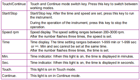 ● Press the Touch/Continue key to switch between the Touch and Continuous modes;
