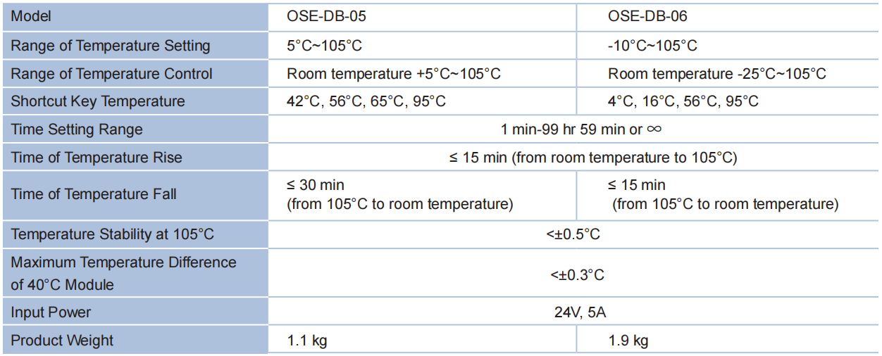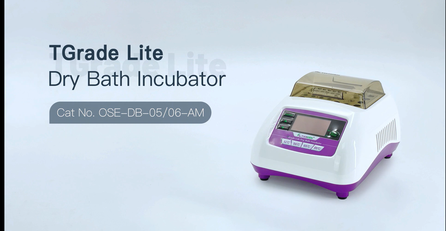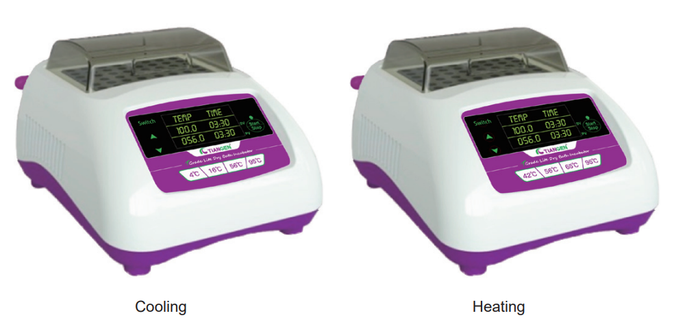 TGrade Lite Dry Bath Incubator is a single-stage program-controlled dry metal bath. The heating bath can be maintained at the specified temperature from room temperature to 105°C, there are 4 shortcut temperature keys, which are 42°C, 56°C, 65°C and 95°C, the temperature can be quickly set with one key; the cooling bath can be maintained at the specified temperature from -10°C to 105°C (to achieve -10°C, the ambient temperature needs to be below 15°C), there are 4 shortcut temperature keys, which are 4°C, 16°C, 56°C and 95°C, and the temperature can be quickly set with one key.