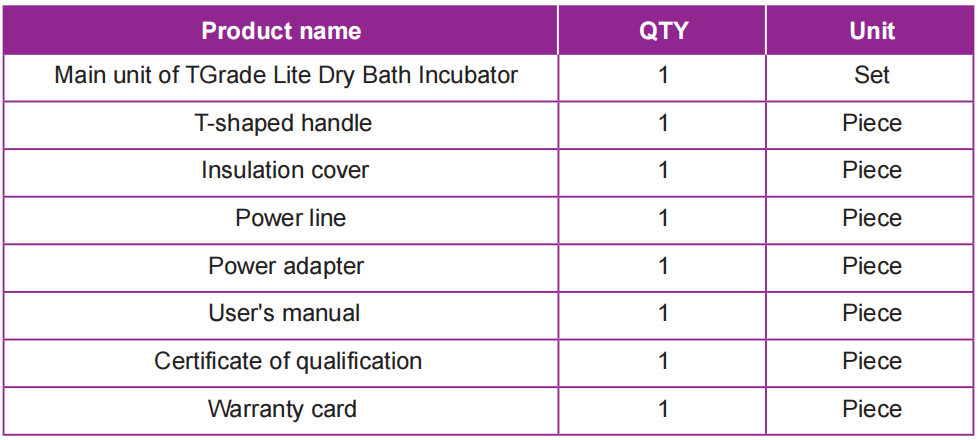 The warranty period of the TGrade Lite (main unit) is 12 months. Damage caused by improper operation or unauthorized modification by using spare parts or accessories not provided by TIANGEN is not covered by the warranty. The warranty also does not cover the damage caused by normal spoilage, radioactive contamination or improper cleaning.