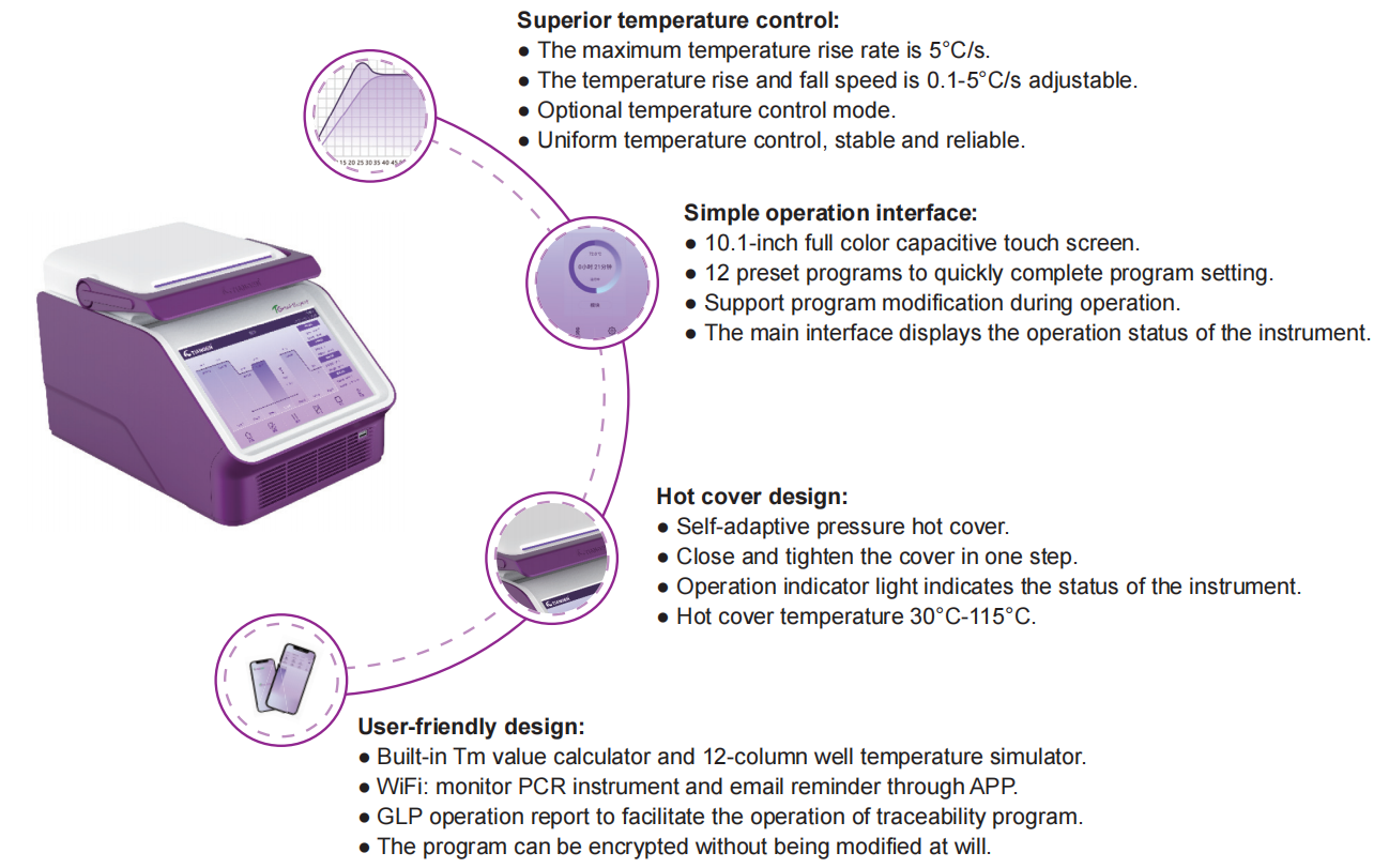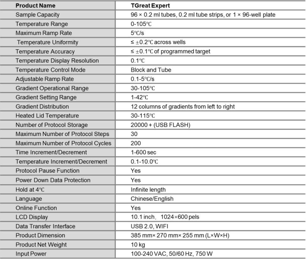 The TGreat Expert is a new generation gradient thermal cycler of powerful functions and high performance. It adopts a 10.1-inch capacitive touch screen, simple and intuitive operation interface, precise temperature control performance, stable operation and produces excellent and reliable results, which can meet a variety of PCR experimental needs.
