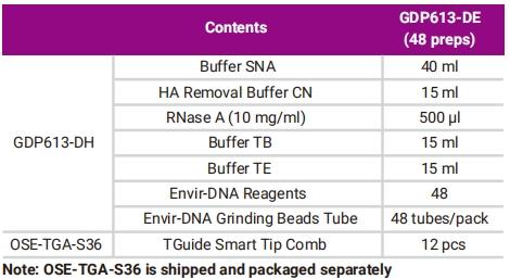 ● Buffer TB does not contain EDTA. In order to minimize the degradation of the extracted nucleic acids for long time storage, customer can replace the Buffer TB with the EDTA-containing Buffer TE if necessary, but pay attention to the fact that the EDTA will affect the downstream experiments, such as PCR, library construction, and so on.